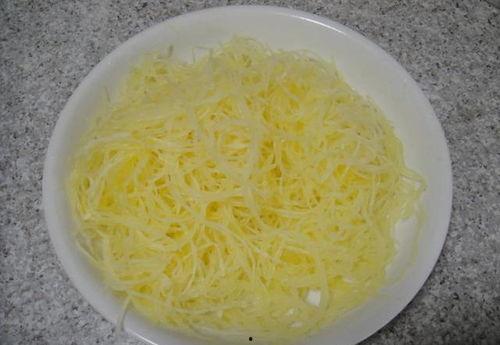面瓜煎饼,是一道极具地方特色的小吃。首先,将面瓜切成细丝,加入面粉、鸡蛋、盐等调料,搅拌均匀。
